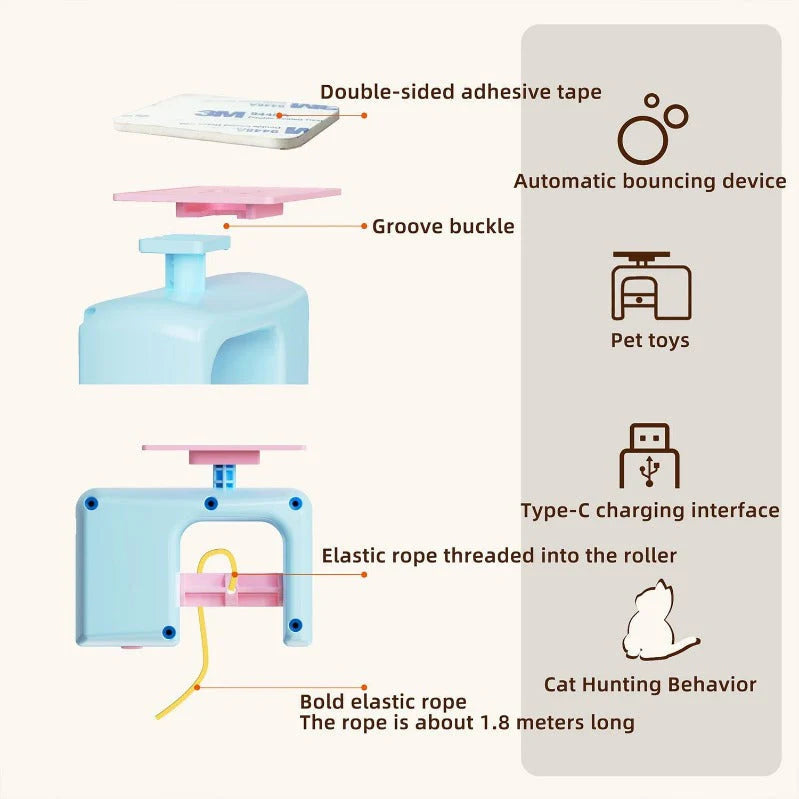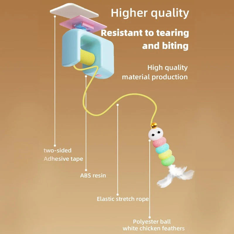 USB-C chargeable “yo-yo” teaser ascends, descends & sways automatically—transform any doorway or window into a day-long playground.